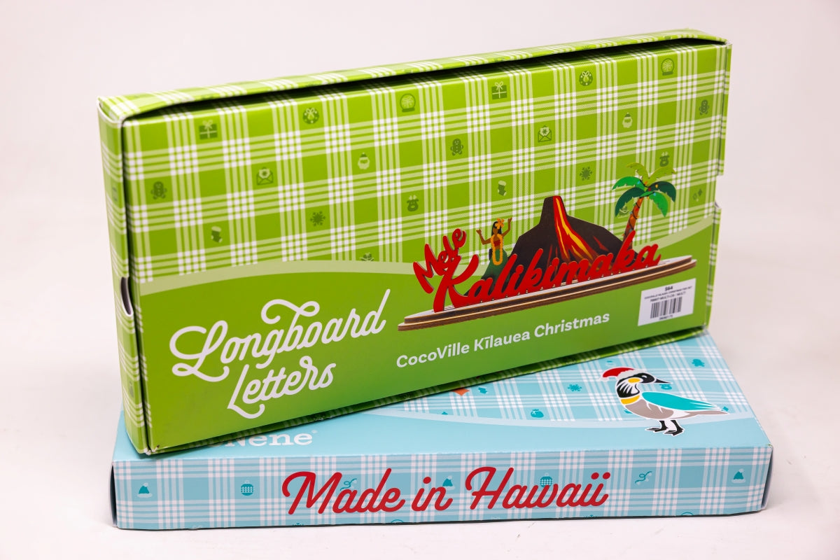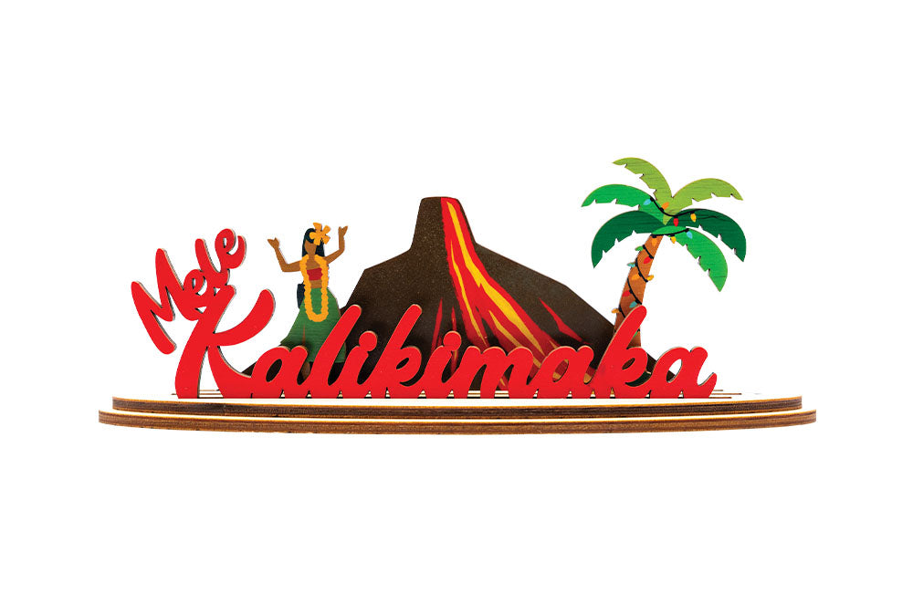 Bring a little island magic (and a dash of lava glow) to your home this holiday season with the Cocoville Kīlauea Christmas Fish Set! This stunning tiered tabletop display captures the fiery spirit of Hawaiʻi’s famous volcano, complete with a glowing lava flow, swaying palm tree, and a hula dancer spreading festive cheer beside bright red “Mele Kalikimaka” lettering. Crafted on a surfboard-shaped “Fish” base, this set blends island charm with tropical holiday warmth—perfect for anyone dreaming of a Hawaiian-style Christmas. Created by local CocoNene designers. Made in Hawaiʻi, made with aloha.