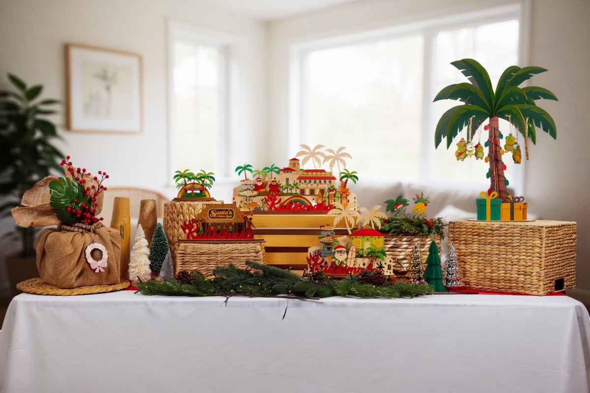 Bring tropical holiday cheer to your space with this festive 3D Palm Tree Table Top Decoration! Designed to resemble a classic palm tree wrapped in colorful string lights and surrounded by bright gift boxes, this handcrafted display piece captures the perfect blend of island style and Christmas spirit. Each piece is made of layered wood, precision-cut and printed with vibrant colors for a dimensional effect. Easy to assemble and lightweight, it’s perfect for tabletops, mantels, or office décor—spreading Mele Kalikimaka vibes all season long! Made in Hawaiʻi — proudly designed and produced by CocoNene’s in-house team, made with aloha.