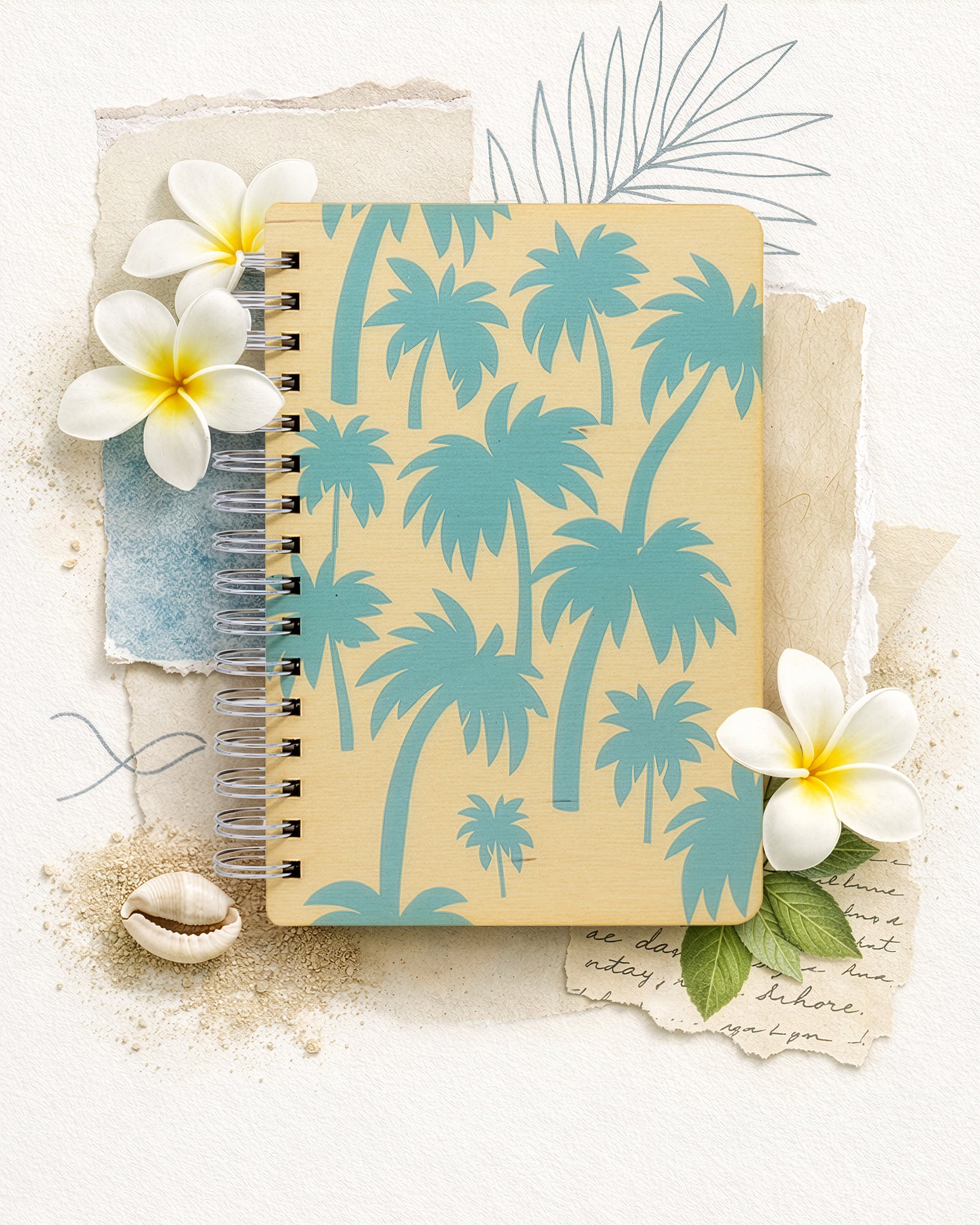 Our new notebooks feature wooden covers, spiral binding, and island-inspired artwork that blends wood textures with fun, expressive designs. Each cover is thoughtfully crafted and includes specialty elements such as cutouts and spot varnish, making every notebook feel unique and premium. Great for journaling, daily planning, or gifting
