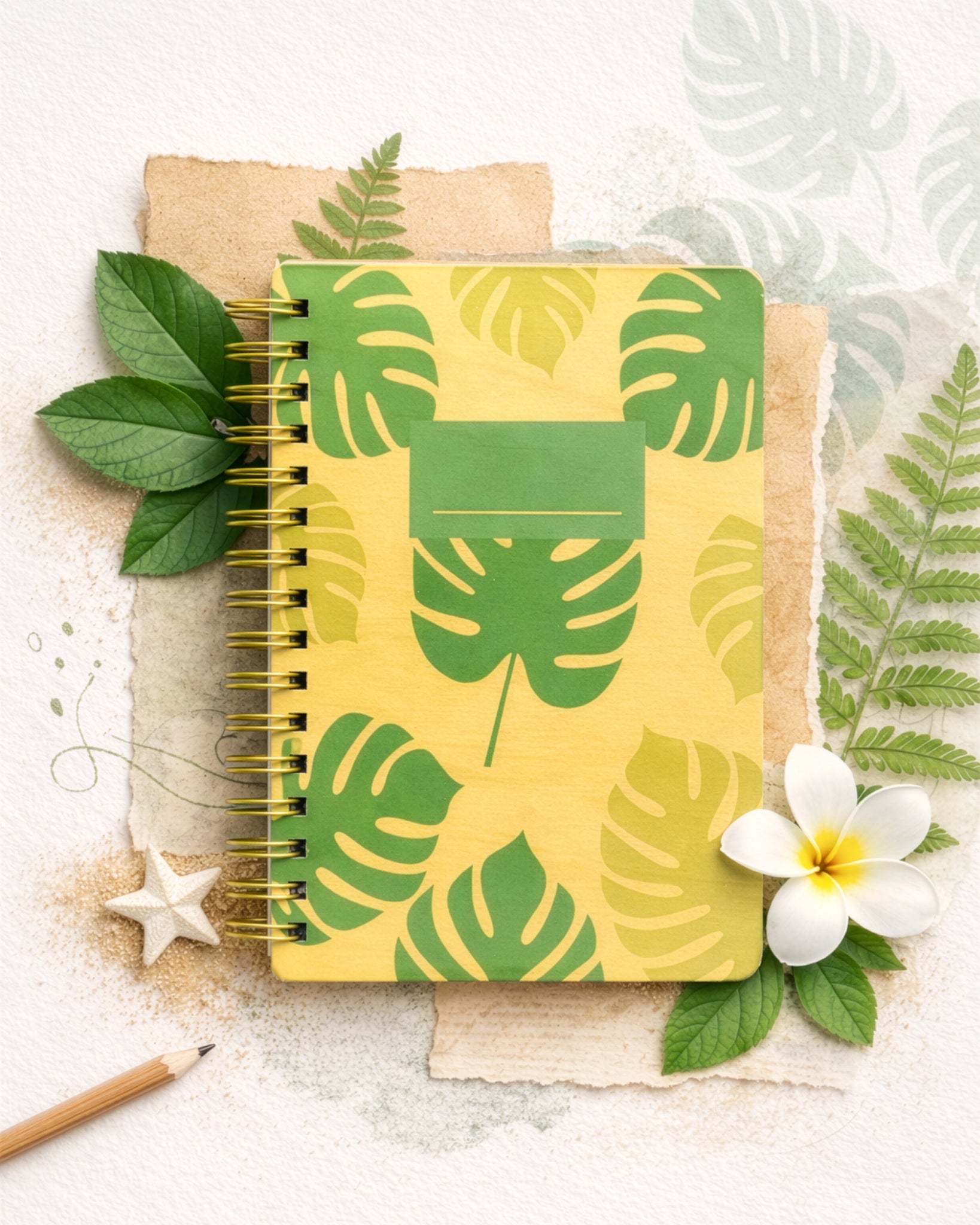 Our new notebooks feature wooden covers, spiral binding, and island-inspired artwork that blends wood textures with fun, expressive designs. Each cover is thoughtfully crafted and includes specialty elements such as cutouts and spot varnish, making every notebook feel unique and premium. Great for journaling, daily planning, or gifting