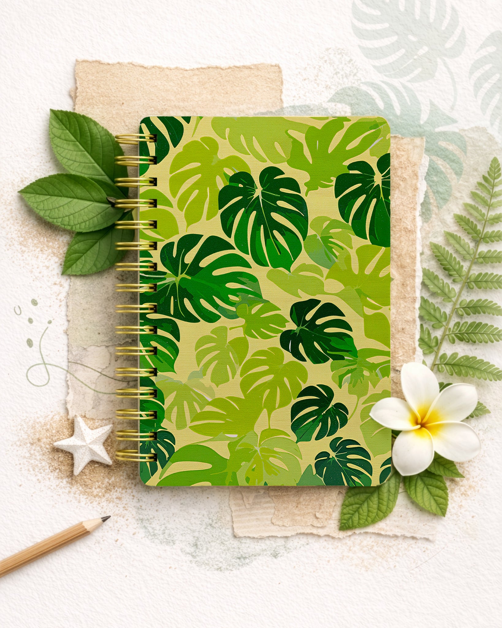 brand_ISLAND SOLE class_WOOD NOTEBOOK department_STATIONERY division_HOME new order_MIH ORDER price_REGULAR SEASON_STATIONERY 2025 style_R9319 stylename_MONSTERA PATTERN WOOD NOTEBOOK subclass_
