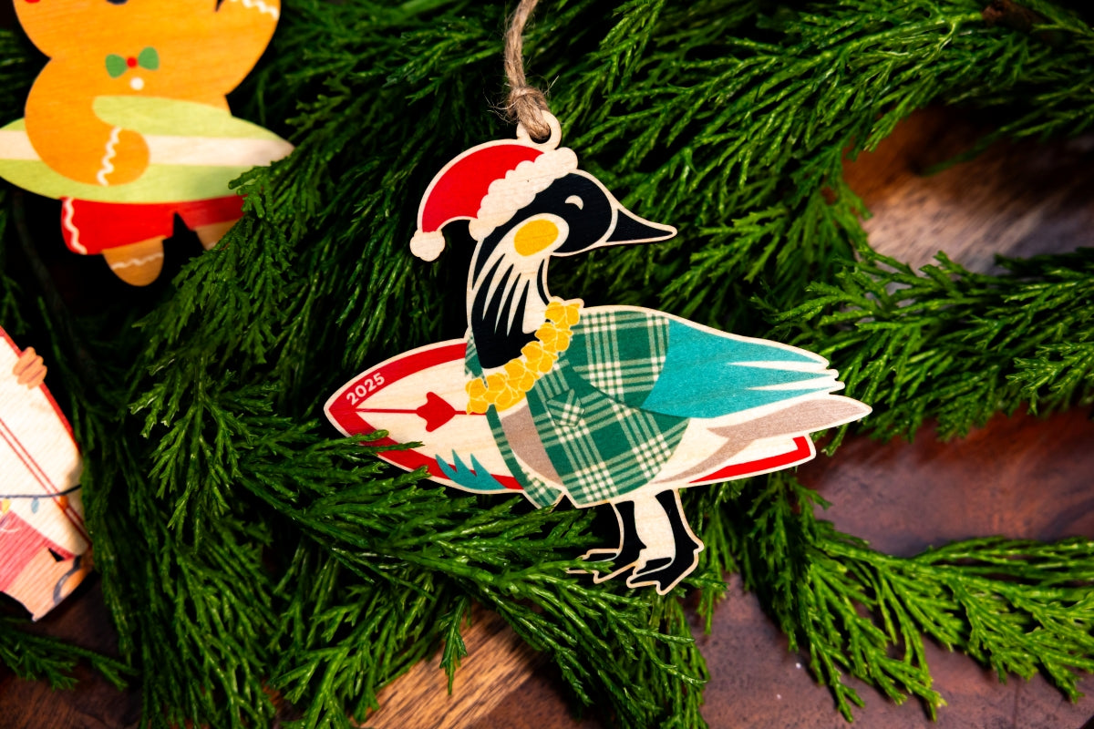 Say Mele Kalikimaka with our CocoNene Surfer 2025 Ornament! Dressed in a cozy plaid shirt, yellow lei, and Santa hat, Hawai‘i’s favorite state bird is ready to hit the waves with his festive surfboard. A fun and collectible keepsake that celebrates aloha spirit, surf culture, and holiday joy all in one! Designed by local CocoNene artists — Made in Hawai‘i, made with aloha.