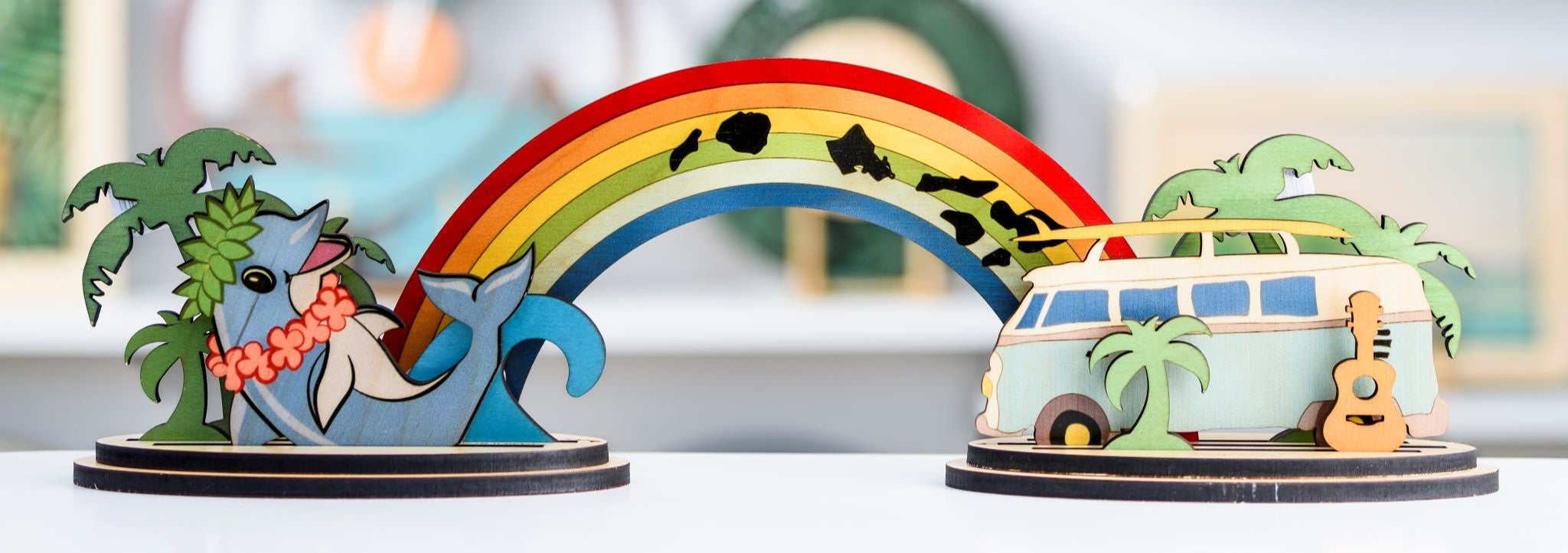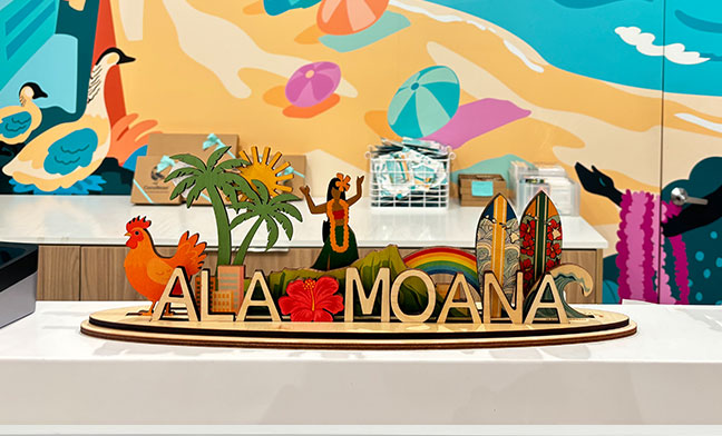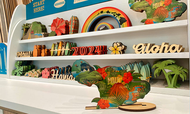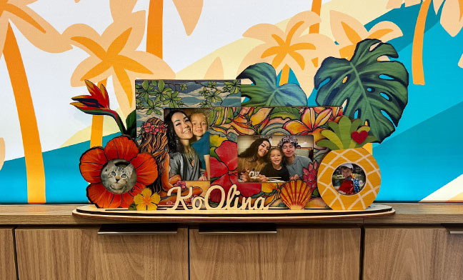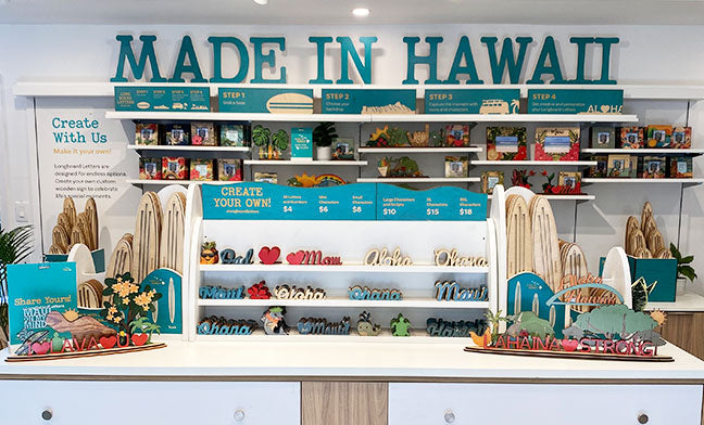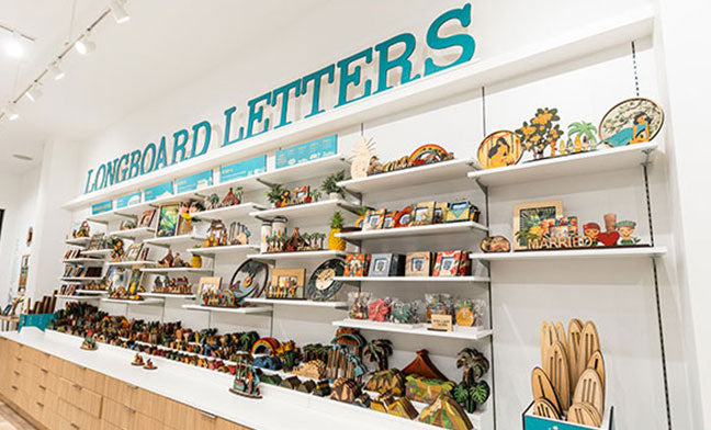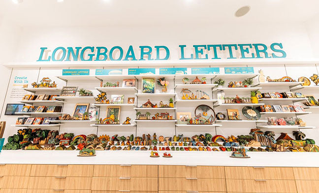 Longboard Letters, our signature product, offers a unique way to display your cherished memories of Hawaii. It all starts with a wooden surfboard base that you can personalize using letters, icons and characters that represent the Hawaiian Islands. Add a picture frame featuring a favorite photo of your 'ohana and your customized masterpiece is ready! We also offer gift sets, if you prefer to grab and go!